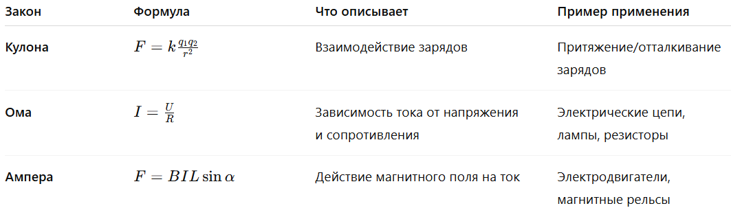 🔹 Итоговая таблица: три основных закона электродинамики
