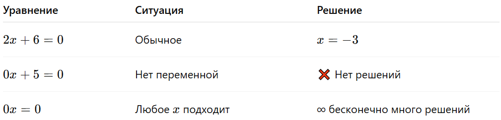 💡 Если при решении переменная исчезла — обязательно проверь, осталась ли верная числовая равенство.